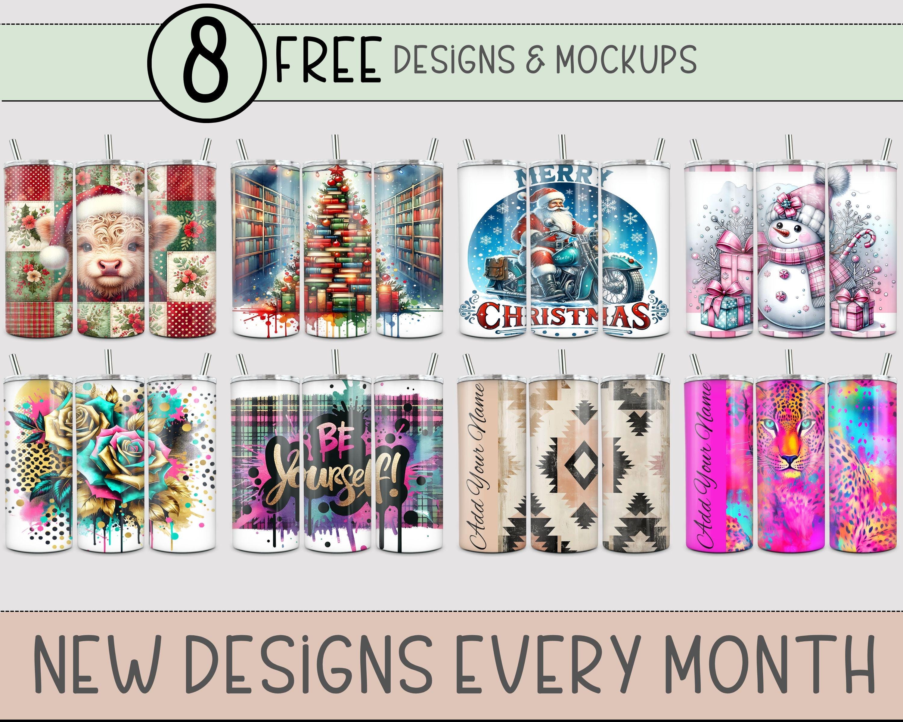 • Bonus #1- 8 Free Tumbler Designs with 8 Free mockups