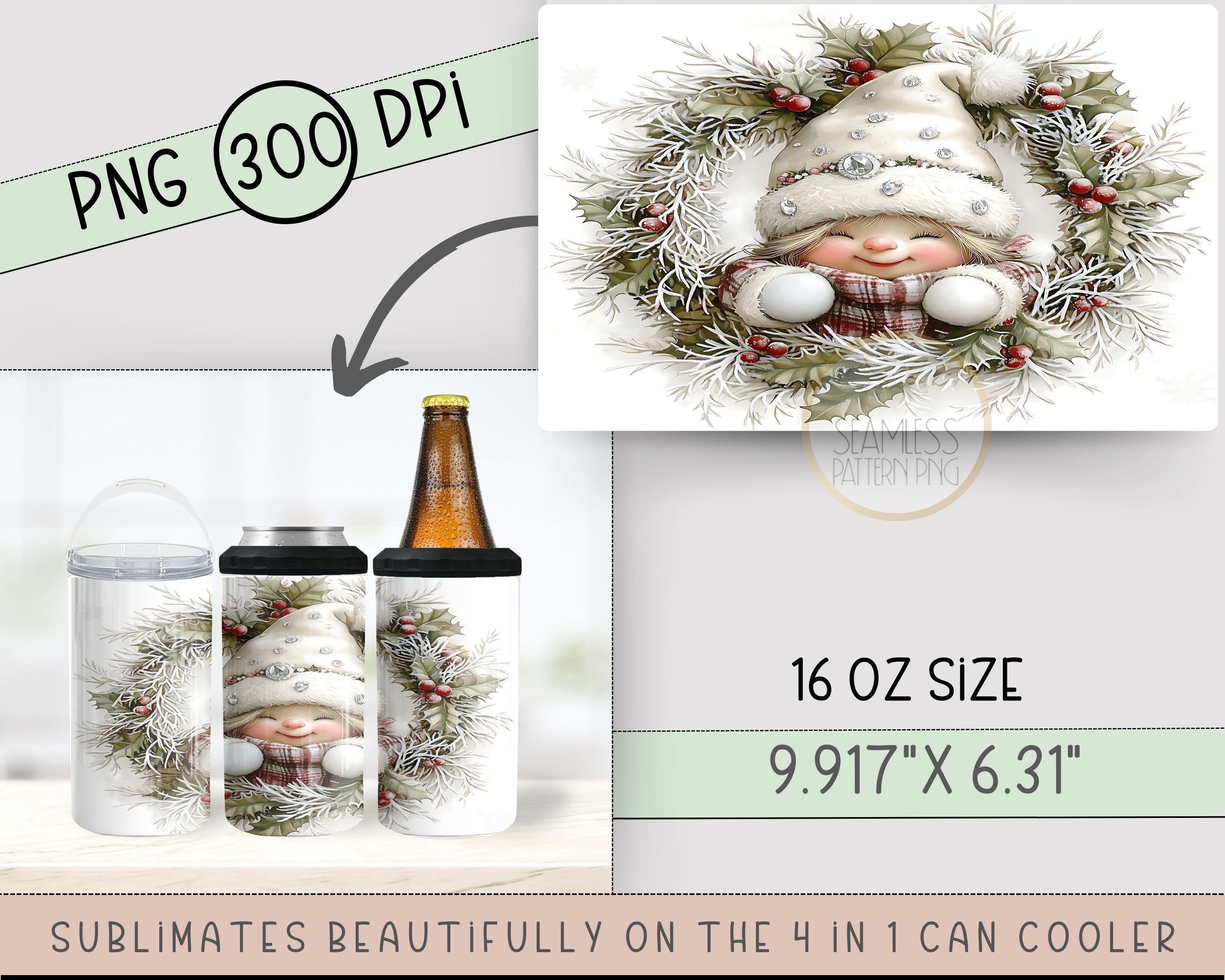 Christmas Gnome 4in1 Can Cooler Wrap, Winter Sublimation Design, Xmas 16 Oz Slim, Cute Gnome 4 in 1 Tumbler PNG, Wreath 16 Oz Can Cooler Digital Download.
