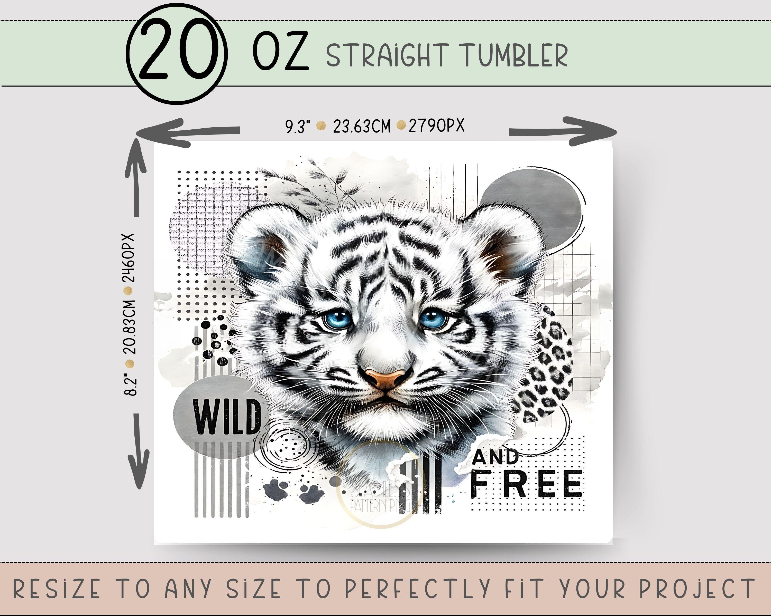 White Tiger Tumbler Wrap, 20oz Skinny Tumbler Sublimation Design, Cat Tumbler Wrap, Leopard Tumbler File, Cheetah Tumbler PNG, Big Cat PNG Digital Download.