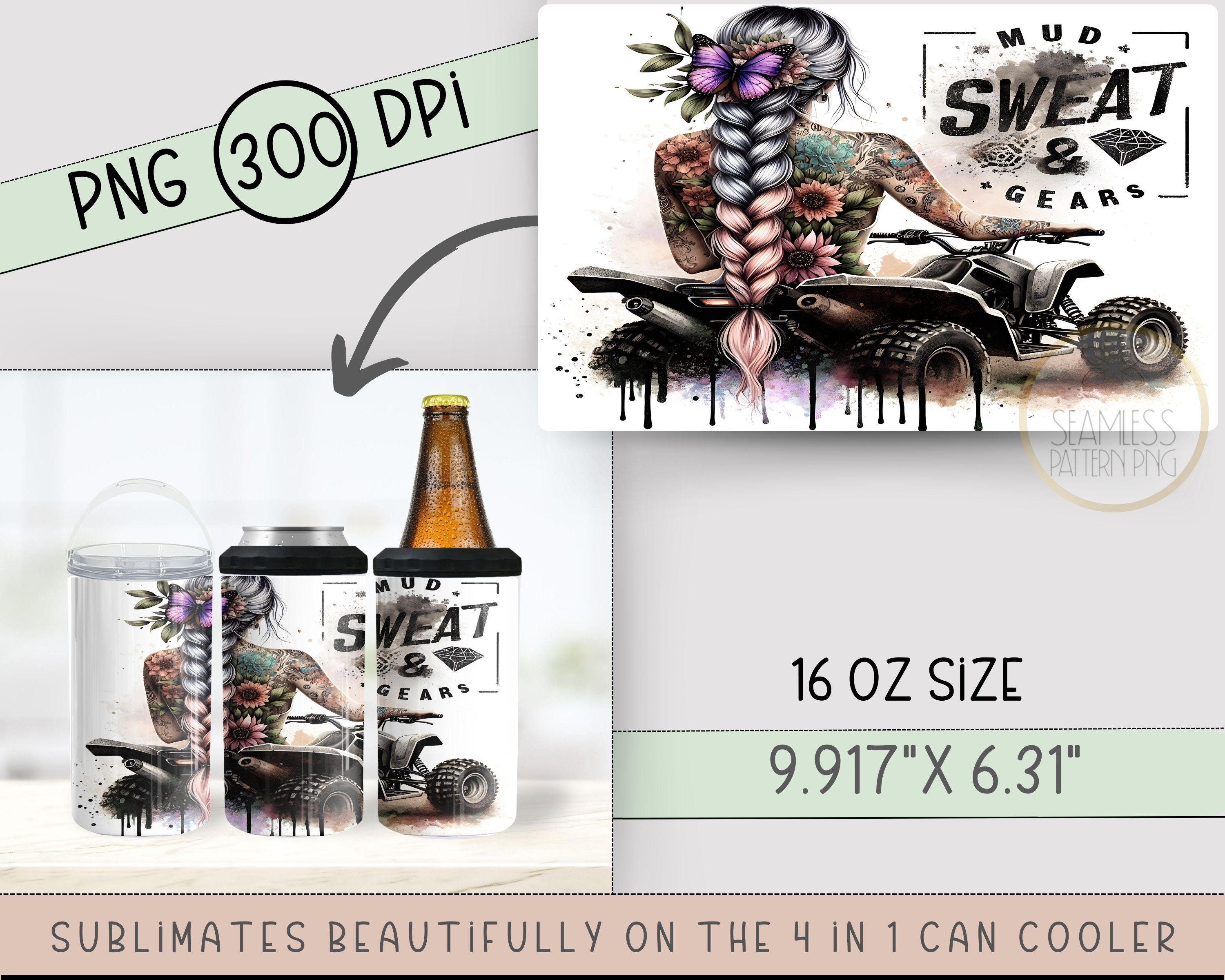 Mud Sweat & Gears, 4 Wheeler 4 in 1 Can Cooler Wrap, ATV 4in1 Tumbler PNG, Tattoo Gril 16 Oz Can Cooler Sublimation Design, Four Wheeler Hard Can Cooler Wrap Instant Digital Download.