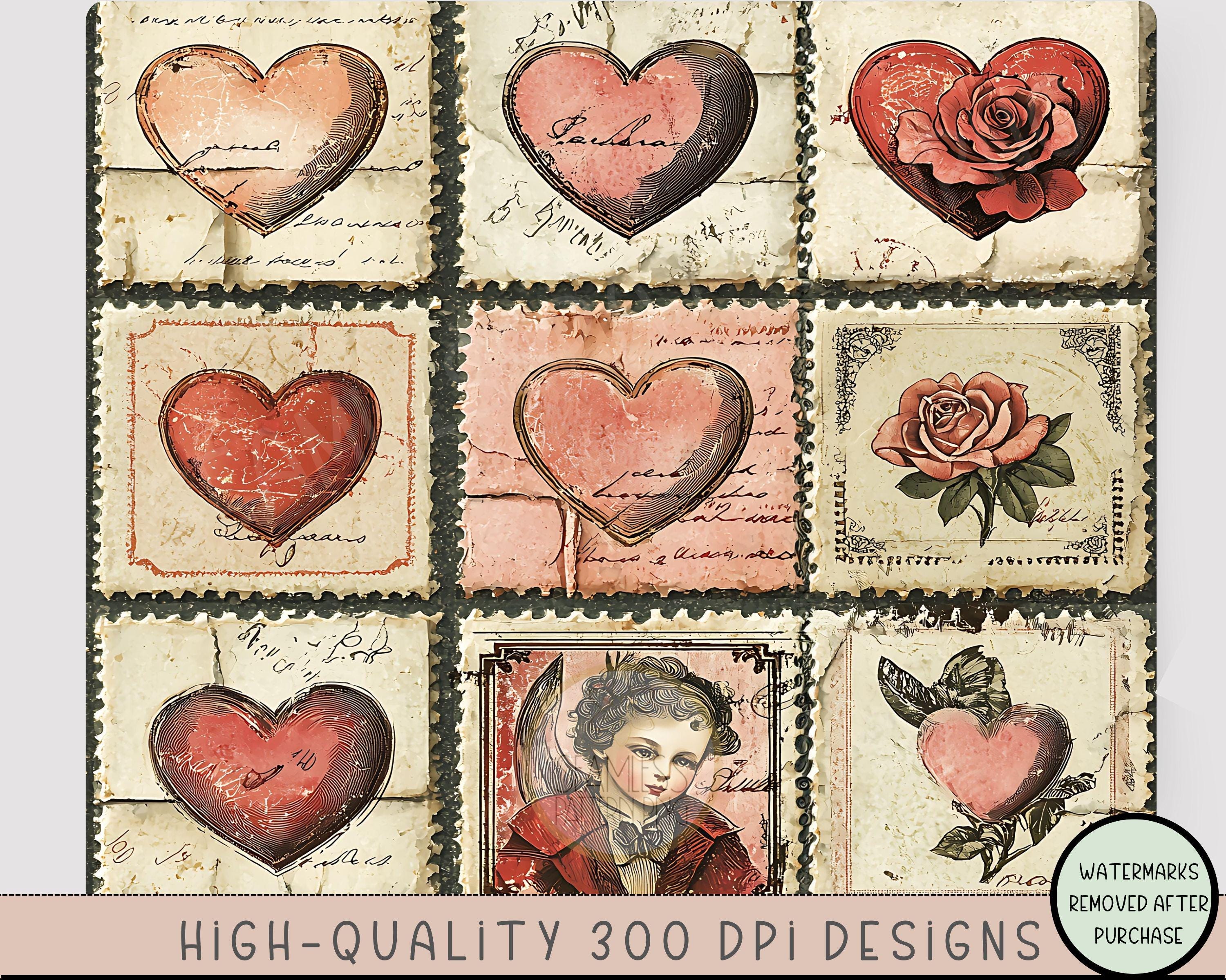 Vintage Heart Tumbler Wrap, Victorian Stamp 20oz Skinny Tumbler Sublimation Design, Shabby Chic Tumbler Wrap File PNG, Valentine's Day Seamless File Digital Download.