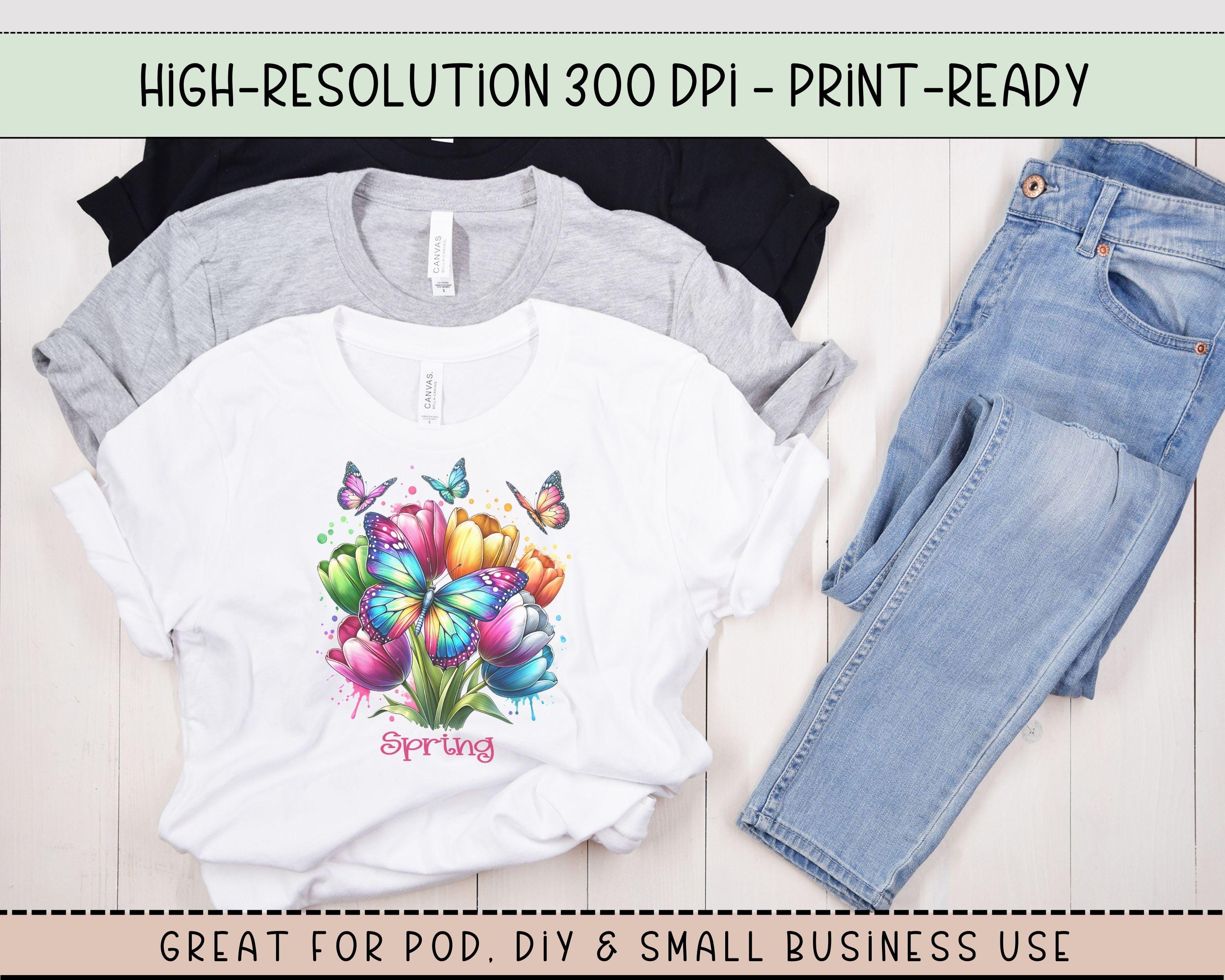 Digital Download, Spring T-Shirt Design, Trendy Spring Sweatshirt PNG, Cute Spring Designs, Floral Spring Butterfly Sublimation Designs for Shirts, Commercial Use.