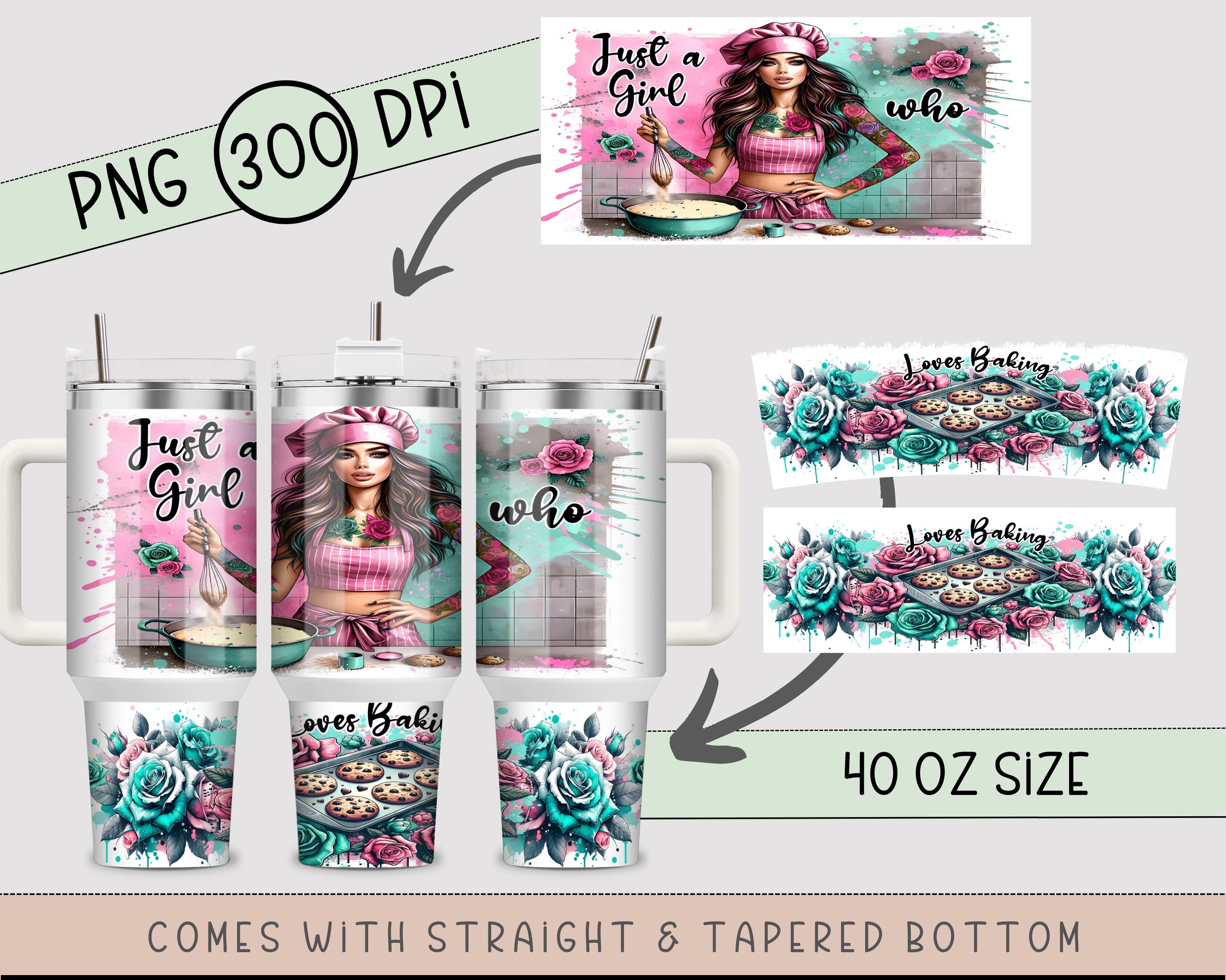 Just A Girl Who Loves Baking 40oz Tumbler Wrap, Cupcake Tumbler Sublimation Design, Baker 40oz Quencher Tumbler Wrap PNG, Dessert Wrap PNG Digital Download.