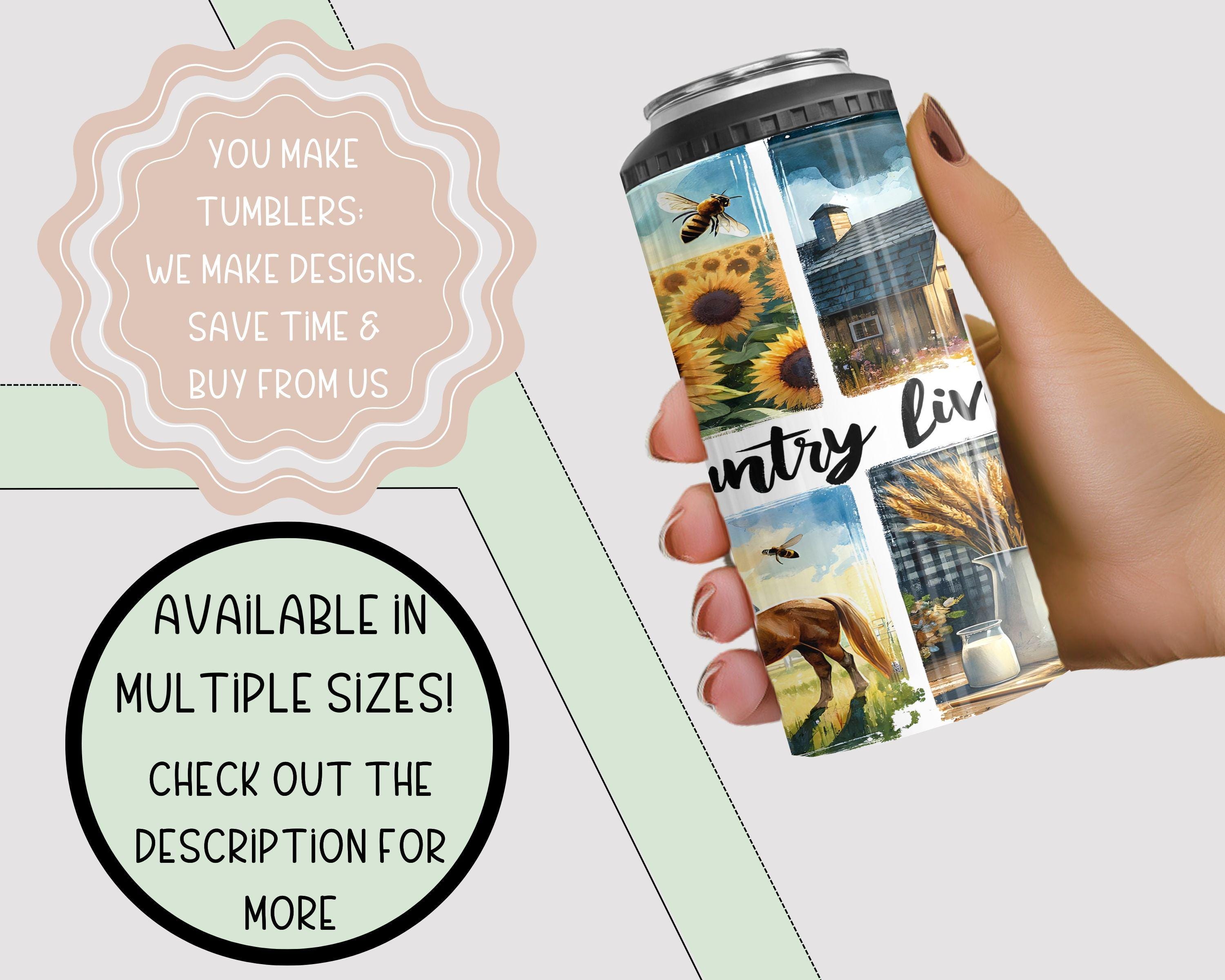 Country Western 4 in 1 Can Cooler Wrap, Western Horse 4in1 Tumbler PNG, Sunflower 16 Oz Can Cooler Sublimation Design, Country Living Design Instant Digital Download.