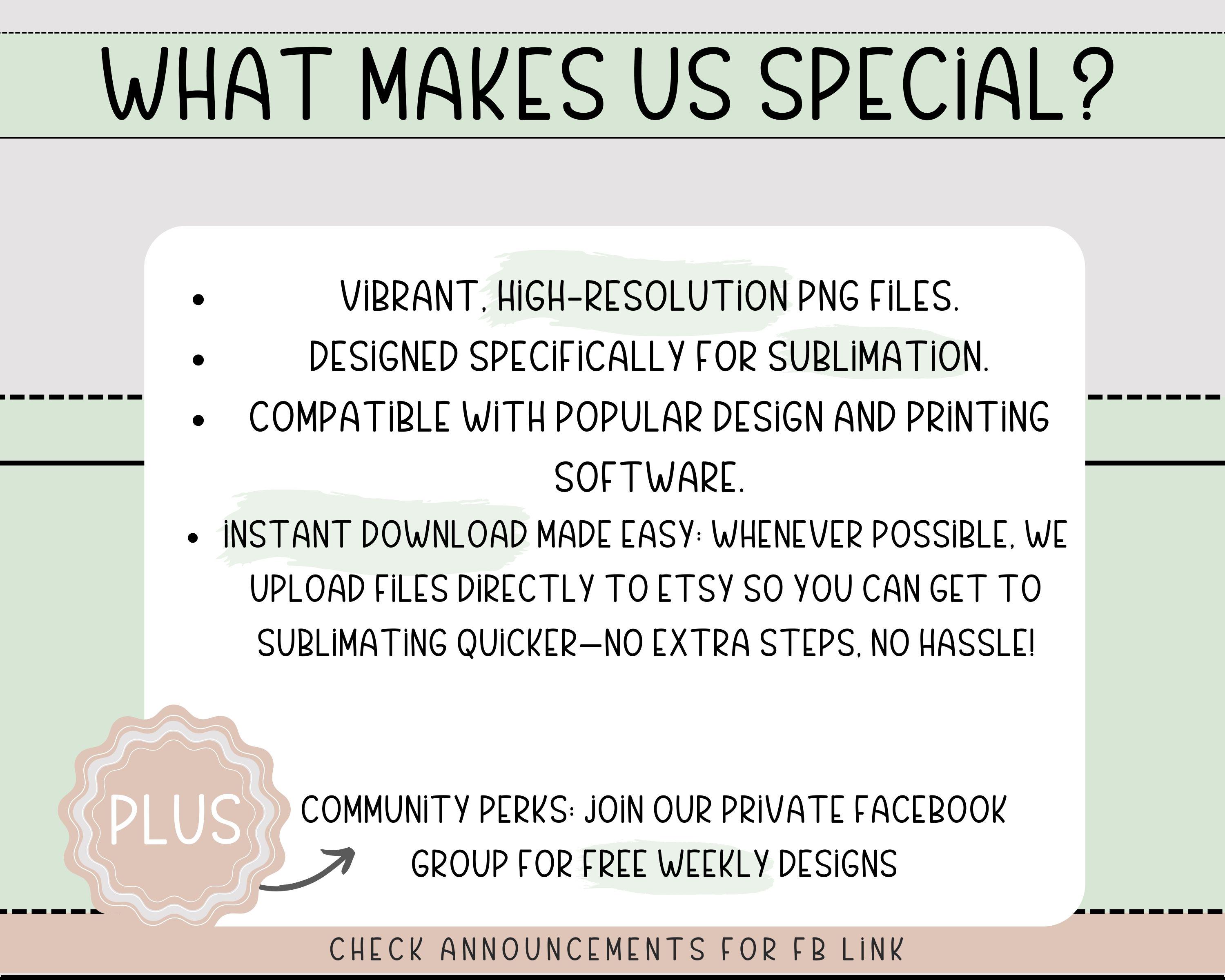 Compatibility: Made for sublimation printing and works with Canva or Inkscape (not compatible with cutting machines like Silhouette or Cricut).